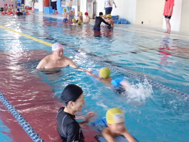 おともだちは、全4回の「水泳教室」で、潜れる様になったり、バタ足で泳げるようになったりと、水と親しみ、仲良くなっている姿が見られました。