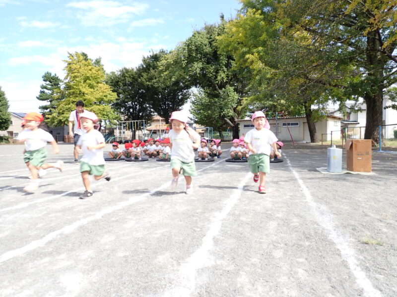 かけっこの取り組み!身体いっぱい使ってゴールを目指します!