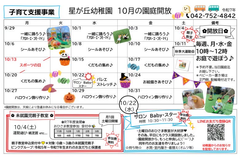 月・水・金 10:00~12:00 園庭開放も実施中です!在園児のおともだちの様子も見る事が出来ますよ♪