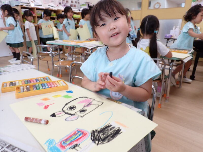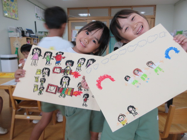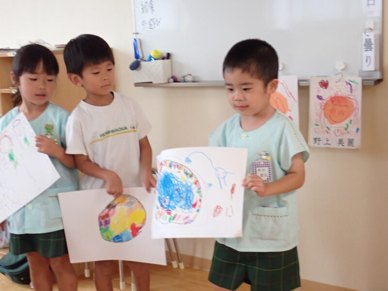 描いた後は、どんな絵を描いたかな?発表をするクラスもありました(*’ω’*)