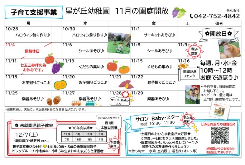 来週11月15日(土)は、本園の【開園記念フェスタ】です(^▽^)/✨