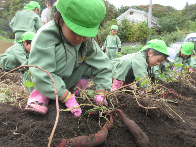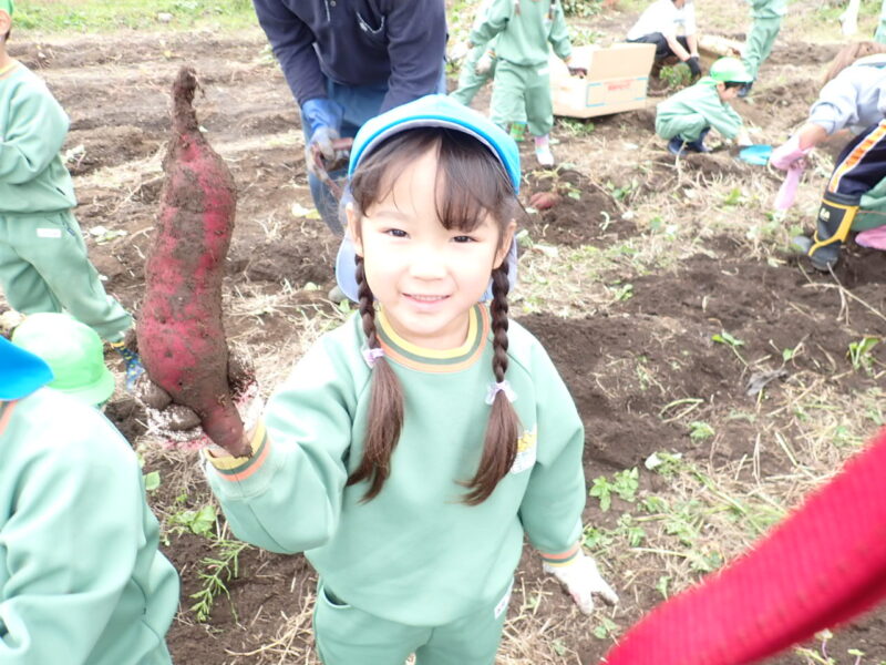 園長先生のお話をよく聞いて、掘り残しがないように、🎵いもいも掘り掘り~!!と、楽しみながら、お芋を掘りました!