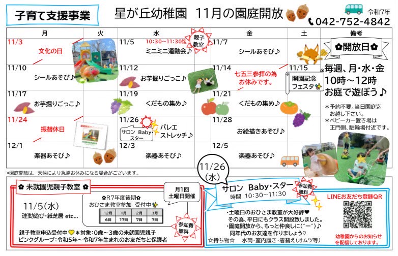 11月15日(土)、星が丘幼稚園の開園記念フェスタが開催されました!今年は、記念すべき60周年!在園児をはじめ、卒園児のおともだち、
