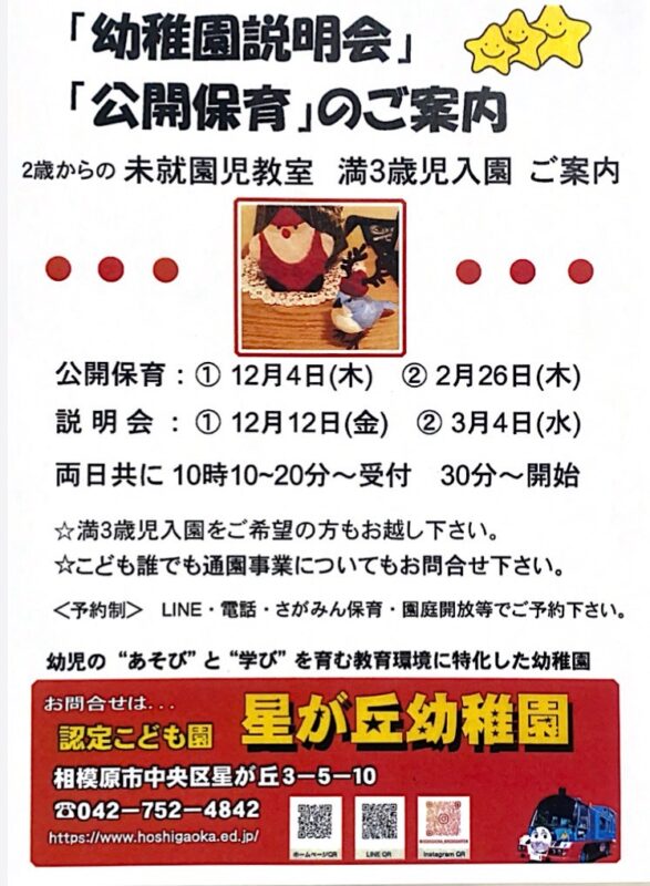 そんな楽しい!星が丘幼稚園の説明会が、明日、実施されます。