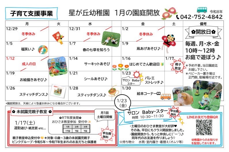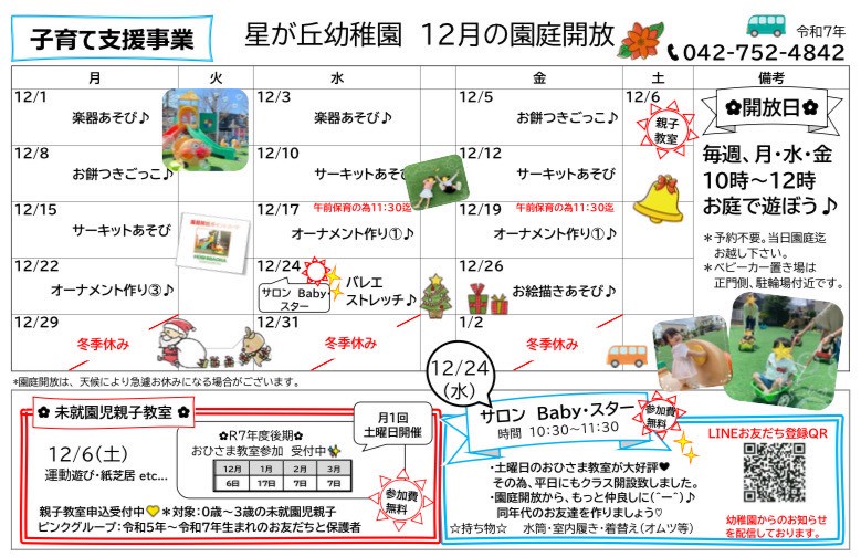 在園のおともだちは終業式を迎えましたが、園庭開放は、12月26日(金)まで実施いたします!