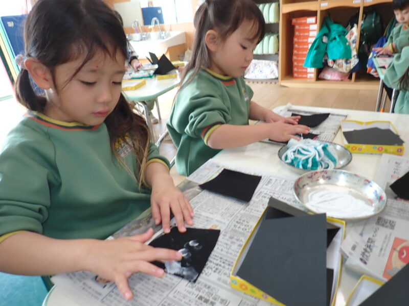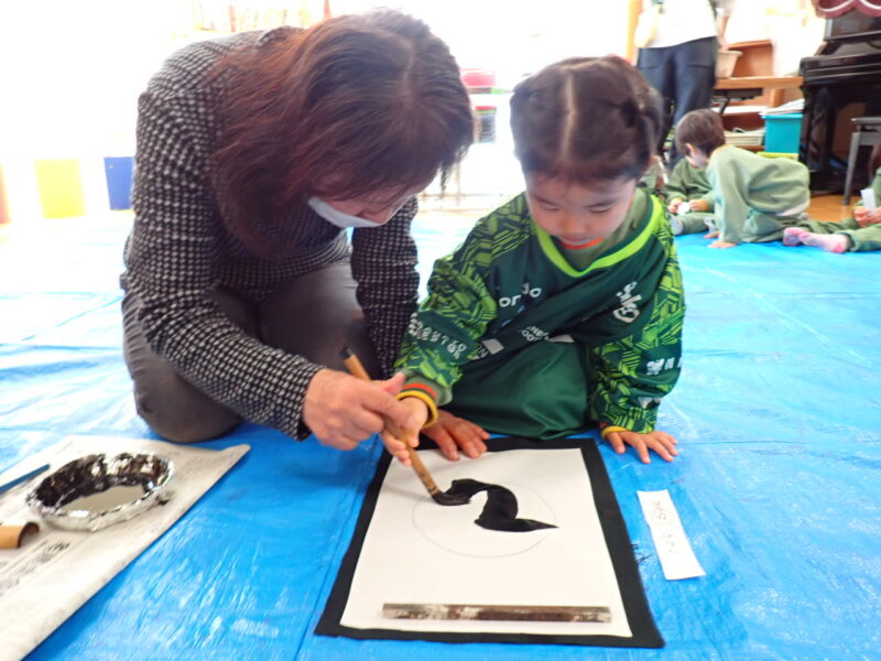 みかん組さんは、お習字の先生にご指導頂き、墨と筆を使って衣装作り💛