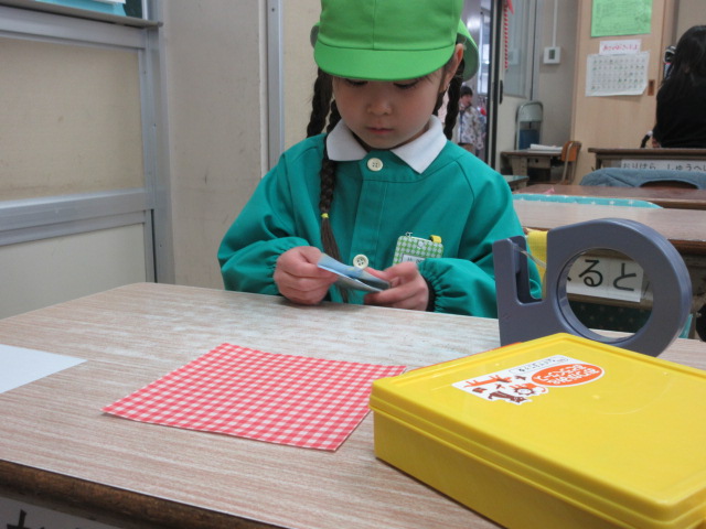 年長組(5歳児)のおともだちが、4月が就学するので、『小学校って、楽しいよ!』が伝わる様にと、星が丘小学校の先生方、1年生のおともだちが、準備をして下さり、小学校にお招きいただきました(o^―^o)ニコ