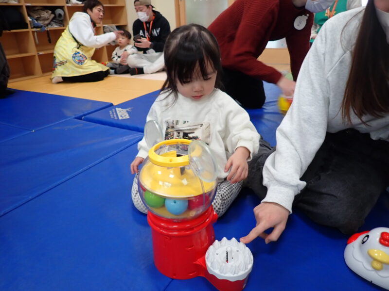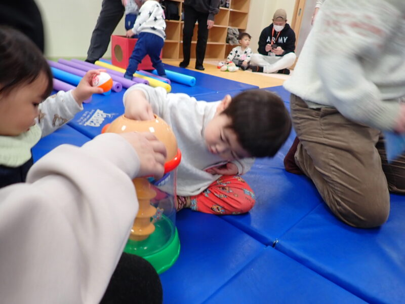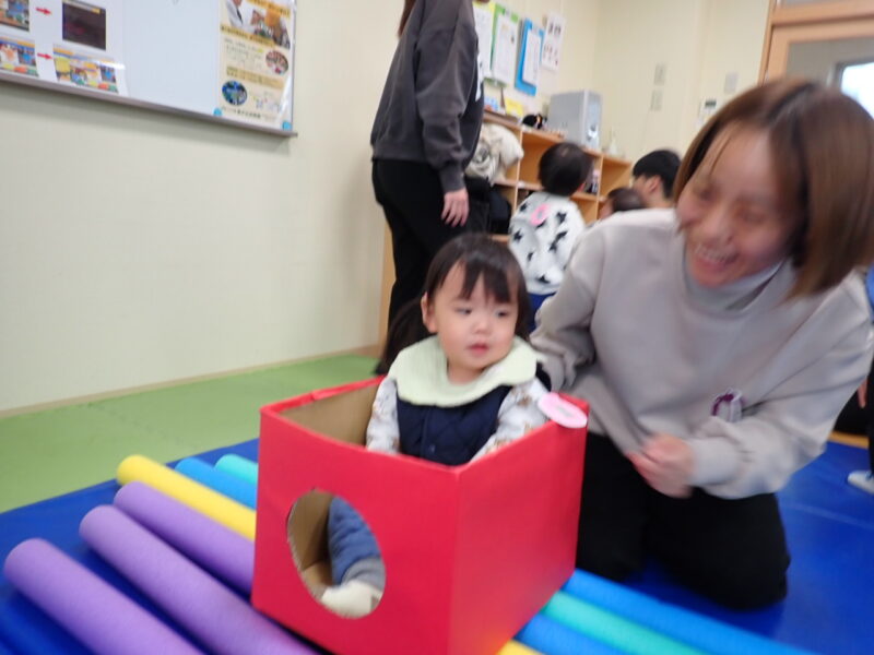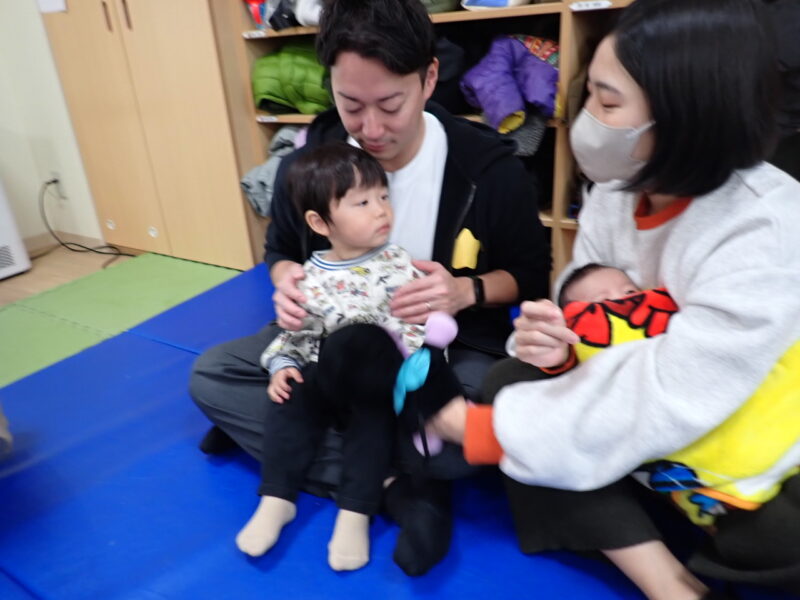 本日は、天候不順の予報でしたので、園庭あそび→室内あそびへ変更させていただきました。ご参加いただき、ありがとうございましたm(_ _)m
