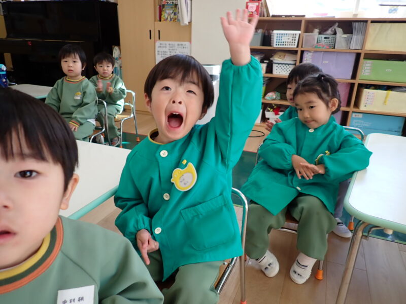 発声練習と、園歌と朝の歌はとっても元気いっぱいで、この1ヶ月でなんだかとても成長して逞しくなったなと感じました。
