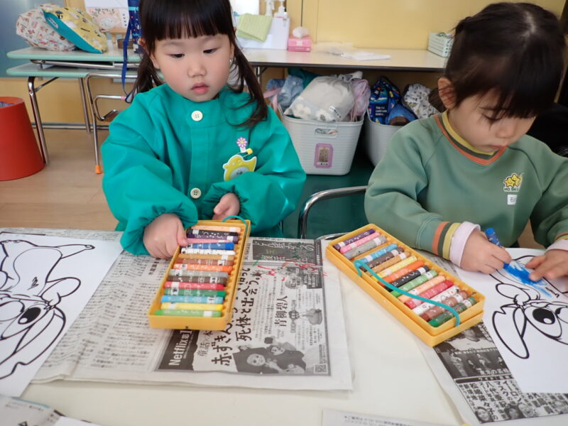 お椅子もちゃんとしまって新聞紙や、クレパスの準備にレッツゴー💪