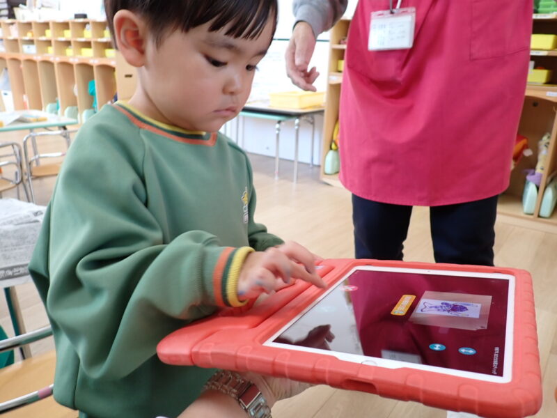 自分達が作ったスティッチが画面に出て来たね~!! ホールで、ひよこ組さん、みかん組さんと一緒に、アートポンを楽しみました。