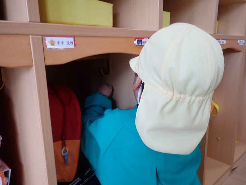 シールが貼れたら、シール帳を鞄にしまいます。「これだ!」と自分の名前を見つけて👀、持ち物の片づけが出来て素敵!。