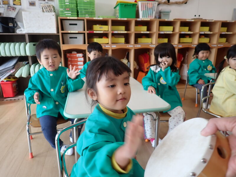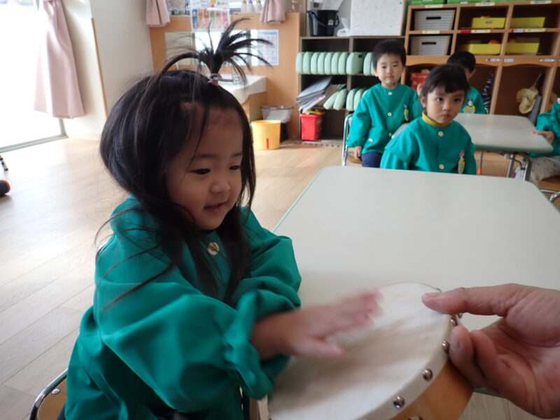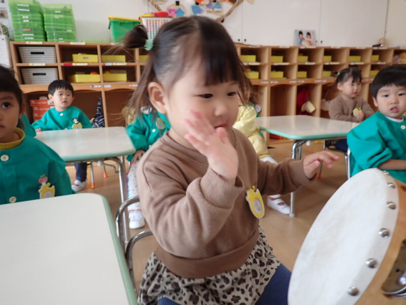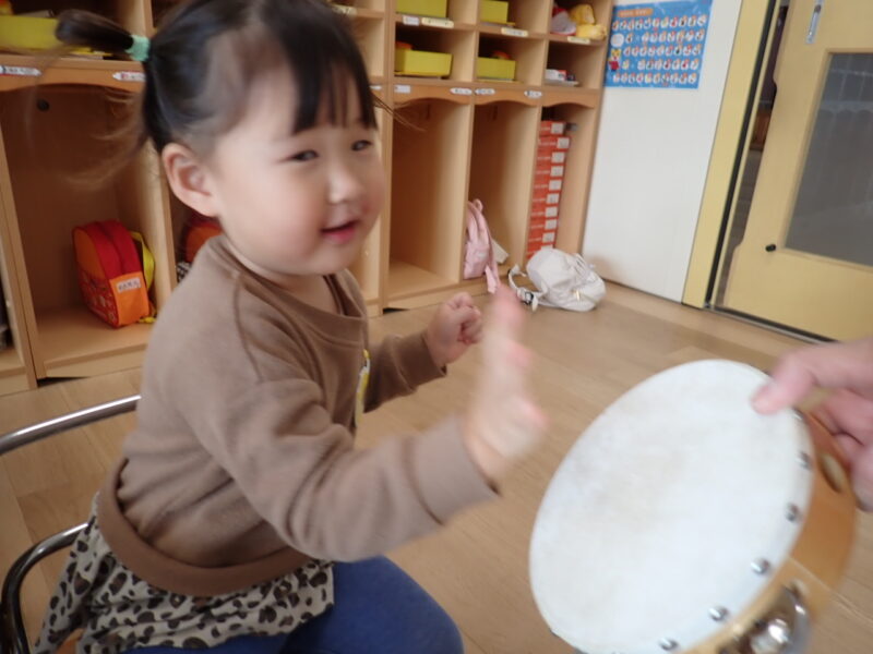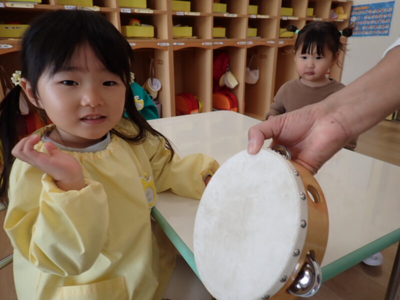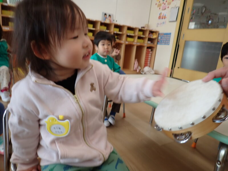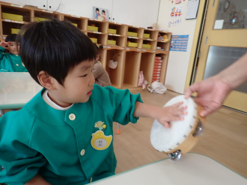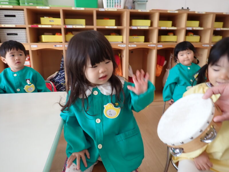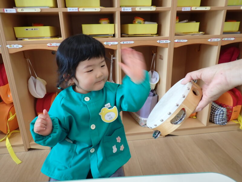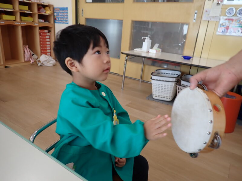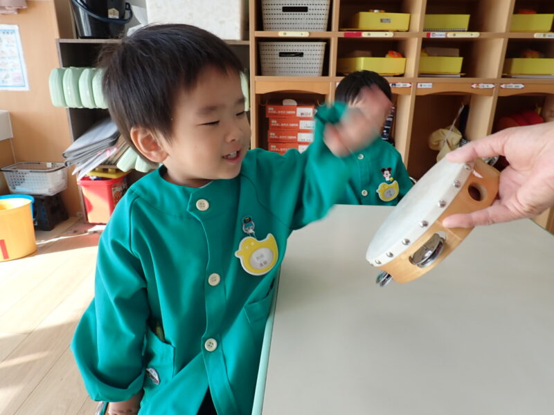 「ハイっ!」と素敵なお返事をしてタンバリンにタッチ✋「パンッ!」と、元気な音が響きました。