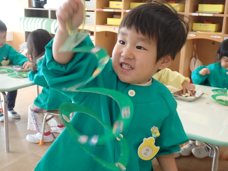 完成したら、「あらら、びよーん、びよーんと伸びたよ~。」