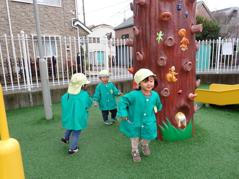 製作あそびの後は外遊び🎵日差しが隠れてしまい少し肌寒く感じましたがみんな元気いっぱい、遊んでいました。