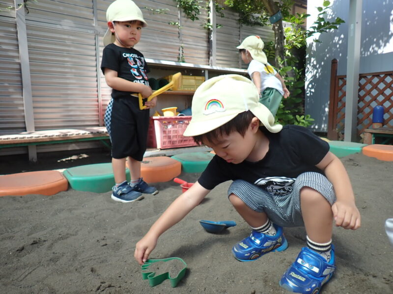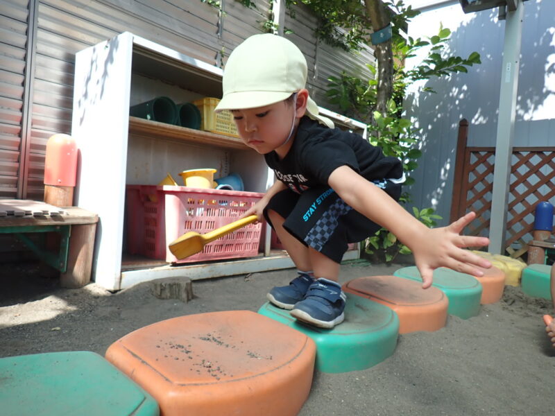 ちょっと気温が高いので、日陰であそびましょう。