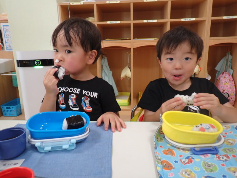 「ママが作ったおにぎり、美味しいの😋」