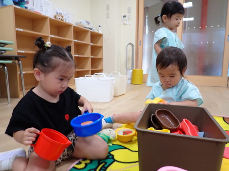 涙が出ていたお友だちもいましたが、先週のような涙の大合唱ではなく、直ぐに落ち着き遊びに集中していました!