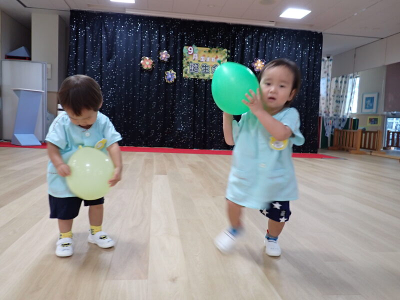 お昼ご飯を持ってきたおともだちは、ホールで風船遊びもしましたよ🎈