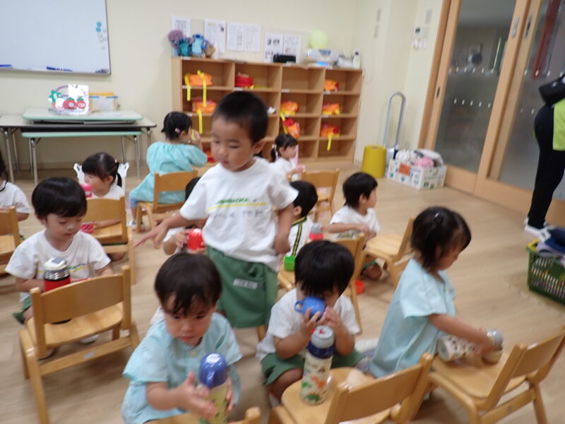 水分補給もしっかりと!自分でどんどんやっていたみかん組さん🍊毎日来るって凄い✨