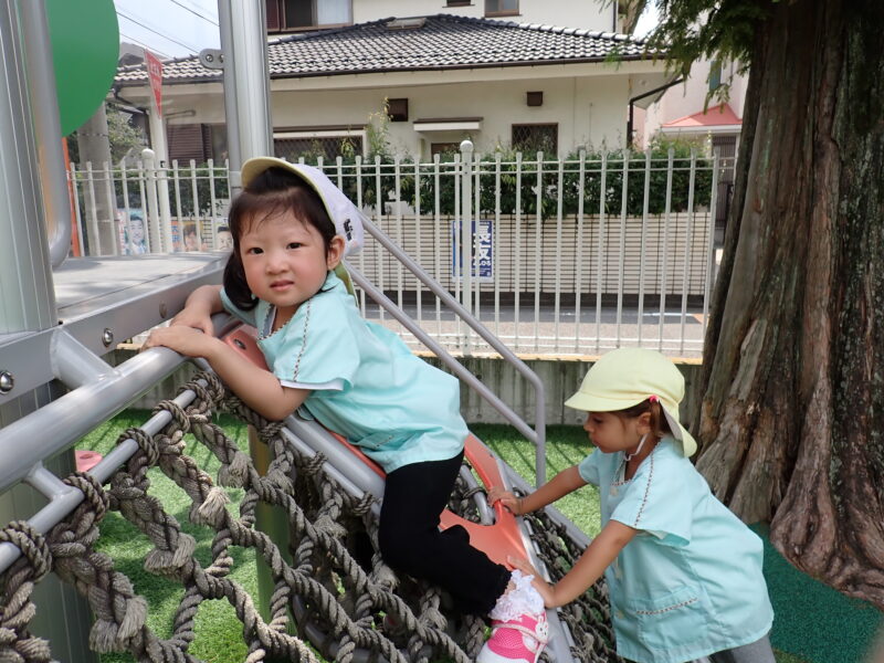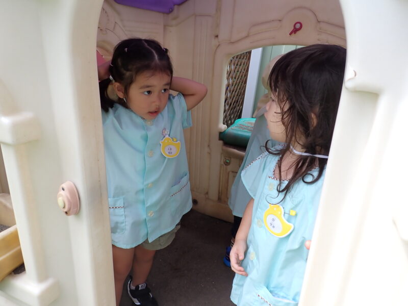 朝の会の時、川又先生から「外が曇っているから外遊びのチャンスだよ!」と声を掛けて頂き外へ!