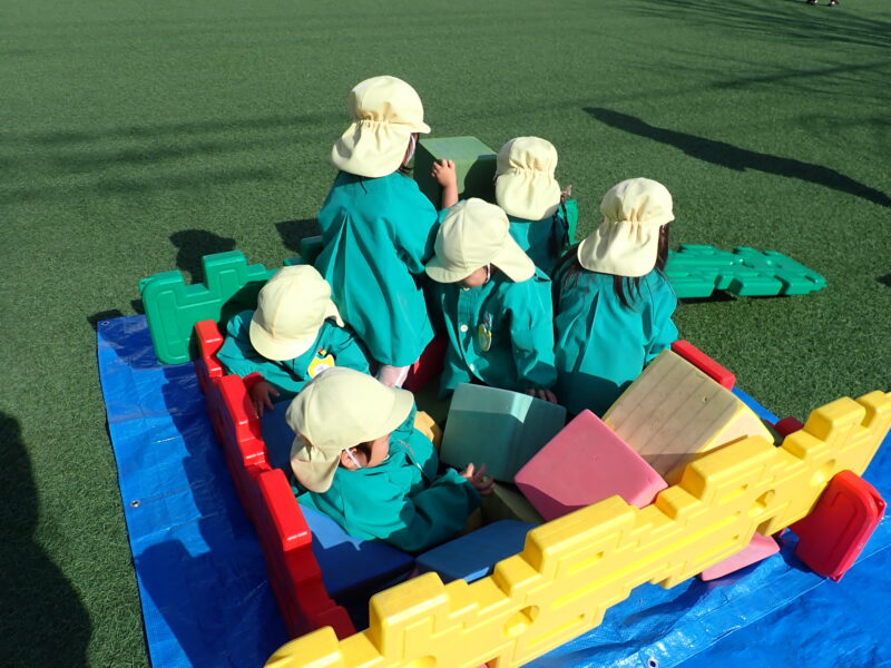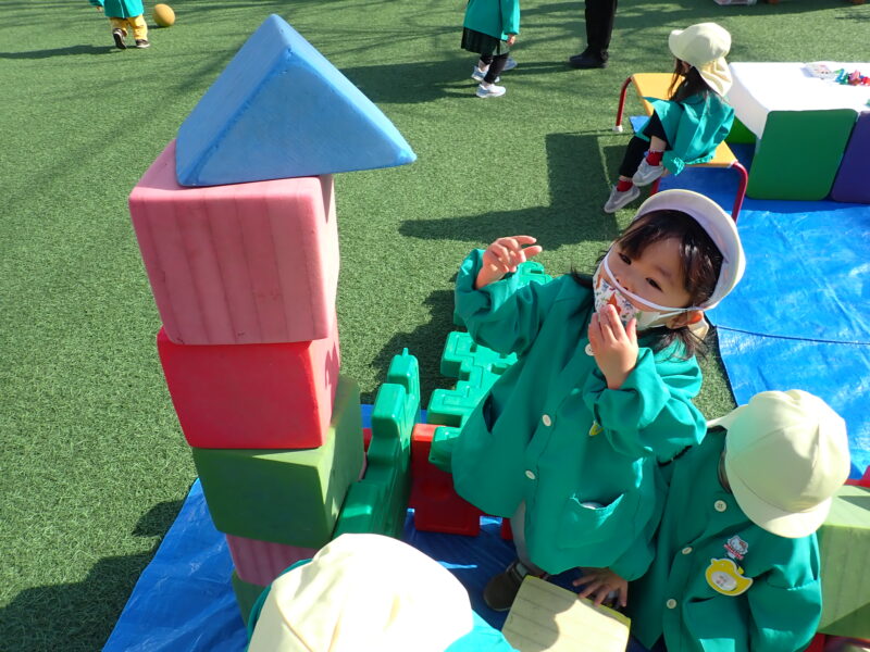 園庭開放の先生が用意してくださったウレタンブロックに夢中だったお友だち!