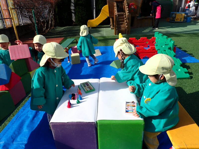 少しずつ幼稚園でのペースが戻りつつある2組さん。ニコニコで登園してくれ、お支度をあっという間に終わらせ遊び始めていました!