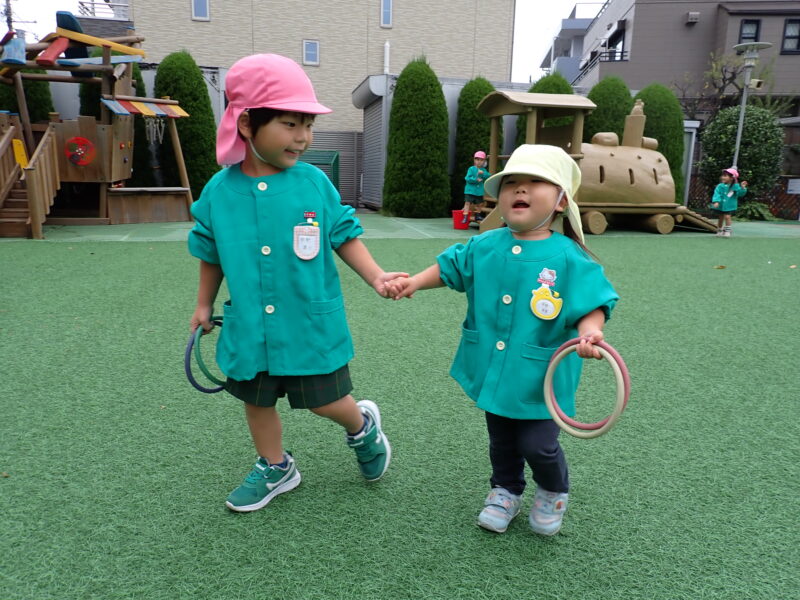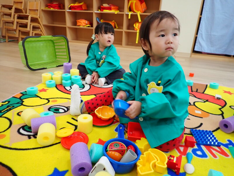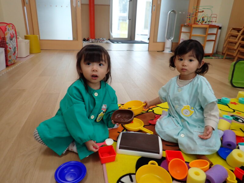朝の自由遊び。少しずつお友だちのやっている事に興味を持ち、一緒に遊ぶ姿も見られるようになってきました!