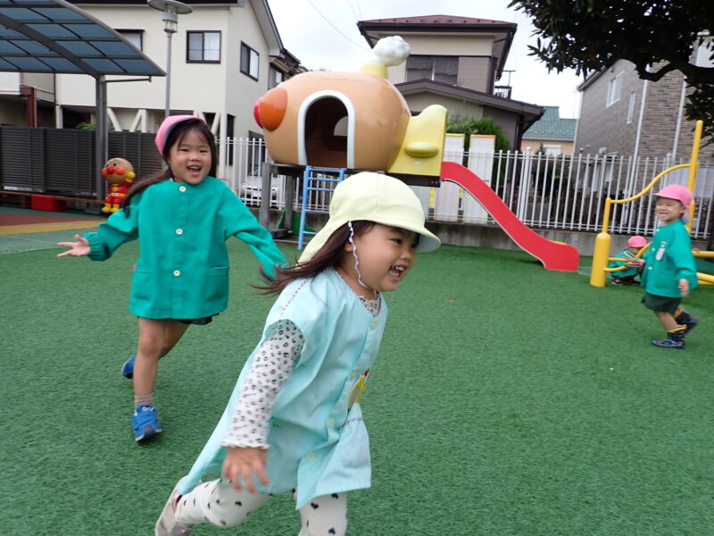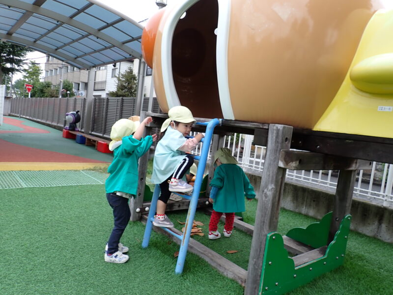 製作遊びの後は外遊び🎵少し前までは登るのを躊躇していたアンパンマン号の梯子も、ずいぶん安定して登れるようになってきました!