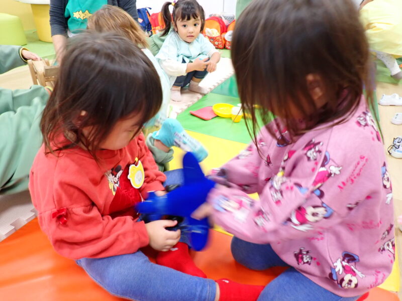 みかん組さんと一緒にさがみん保育のお部屋で過ごしましたが、いつもと違うおもちゃもあり大興奮でした✨