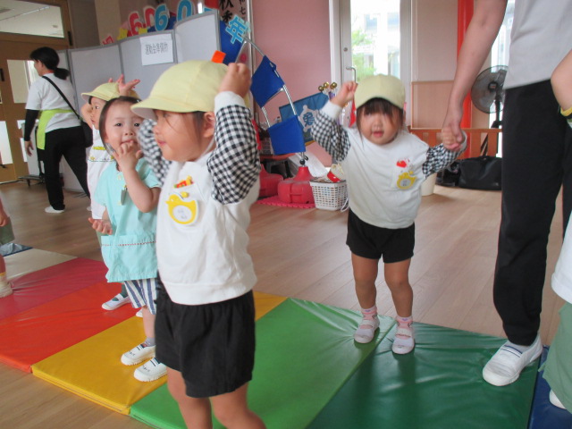 元気いっぱいのみかん組さんと一緒だったので、ぴよぴよさんも元気いっぱい!!今日の取り組みでは、魚や乗り物に変身して楽しんでいました🎵