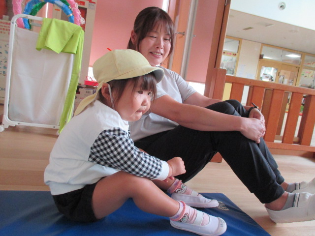 三角座りも素敵!先生やみかん組のおともだちを見てまねっこしていました✨