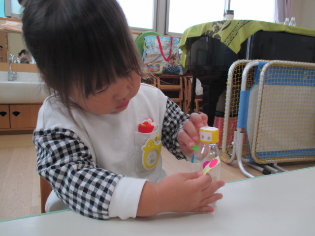 かわいいビーズがたくさん!お口に入れちゃだめだよ~!!のお約束もしっかり守って、周りにシールを貼って完成😄