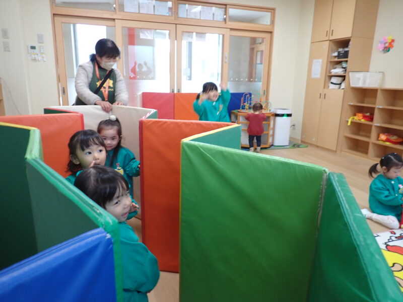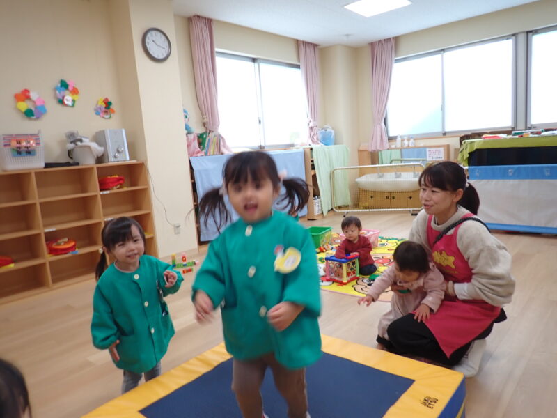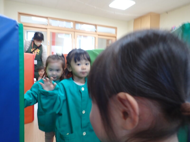 急に寒くなって長い時間の外遊びは少し心配💦教室でも体を動かせるようにトランポリンやマットを使ったトンネルを楽しみました🎵