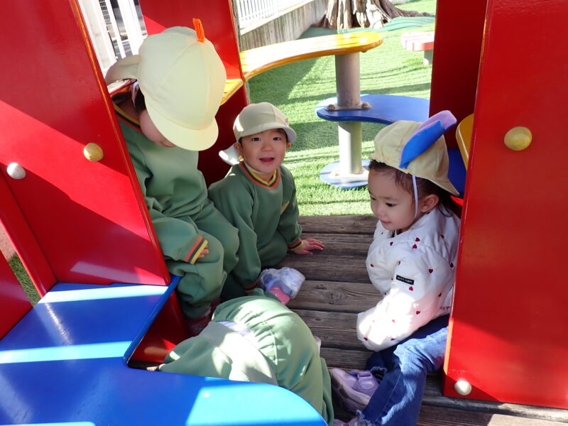 みかん組さんとかくれんぼ。ひよこさん、みかんさんでなければ難しい隠れ場所で、発見!!