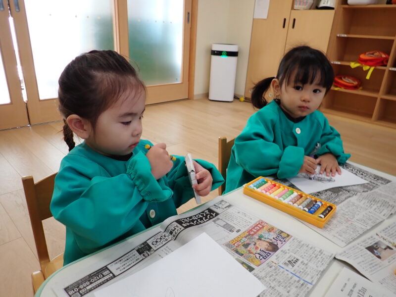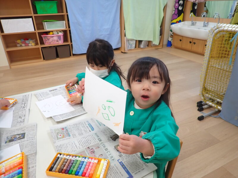 「お絵かき好き~」クレパスも上手に持て、集中して取り組んでいました✨