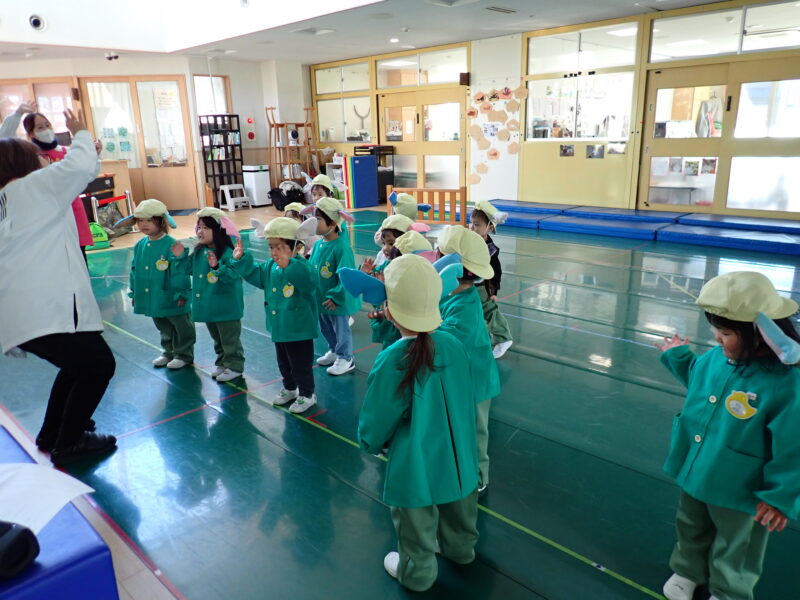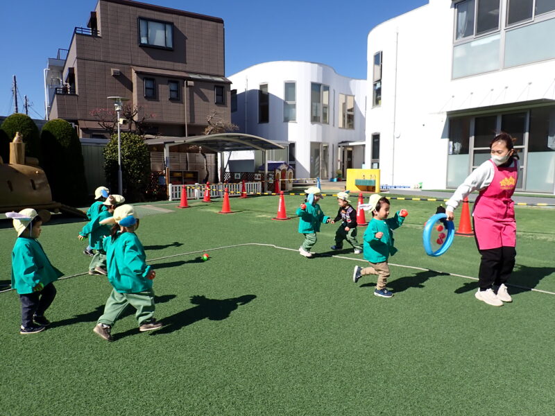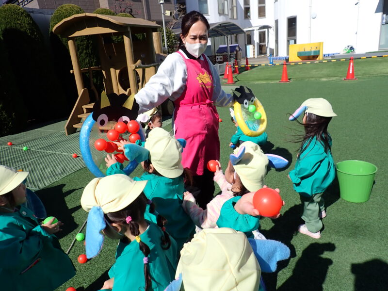 今日は【節分】みんなの中にいる鬼(イヤイヤ鬼、泣き虫鬼等)を退治しよう!「鬼は外!!」元気なかけ声と共に豪速球が飛んできました!