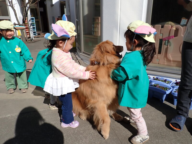 アトムくんが園庭に出てきてくれ、うれしくて駆け寄っていました✨