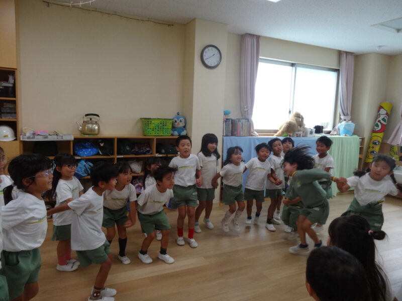 室内で「言うこと一緒、やること一緒」というゲームを行いました!