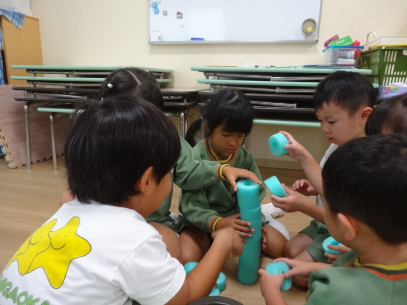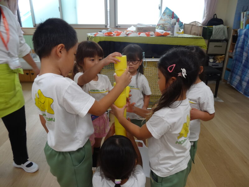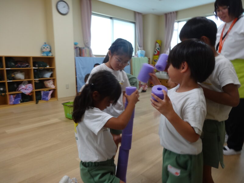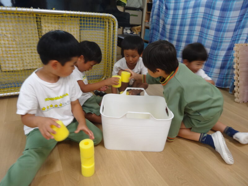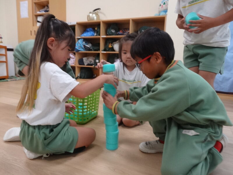 何回も何回も挑戦し、タワーが倒れることもありましたが、見ているお友だちが「がんばれ!」と応援している様子が見られました。