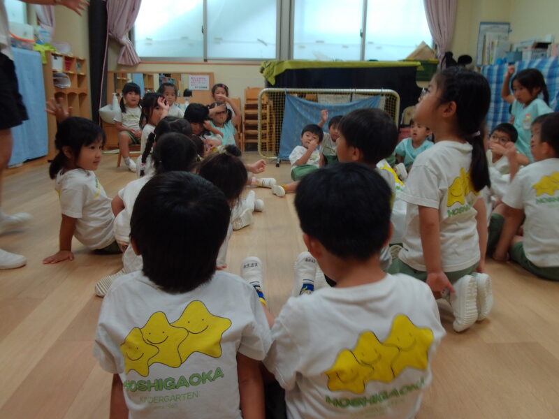 星組では、ハンカチ落とし、伝言ゲームなどみんなで楽しめる遊びを途中で入れたりしています。