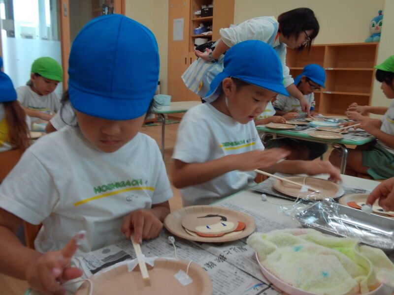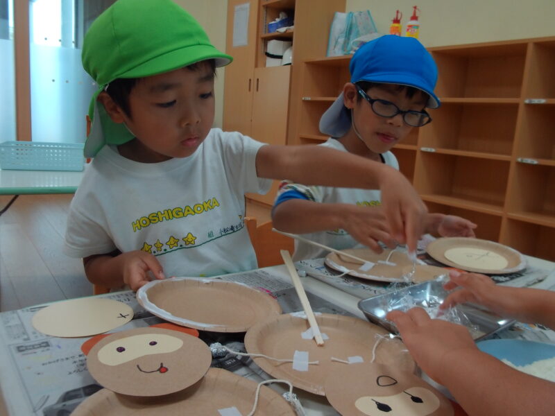 月曜日に、11月の星イベントで使う『でんでん太鼓(たぬき)』を作りました(*^_^*)