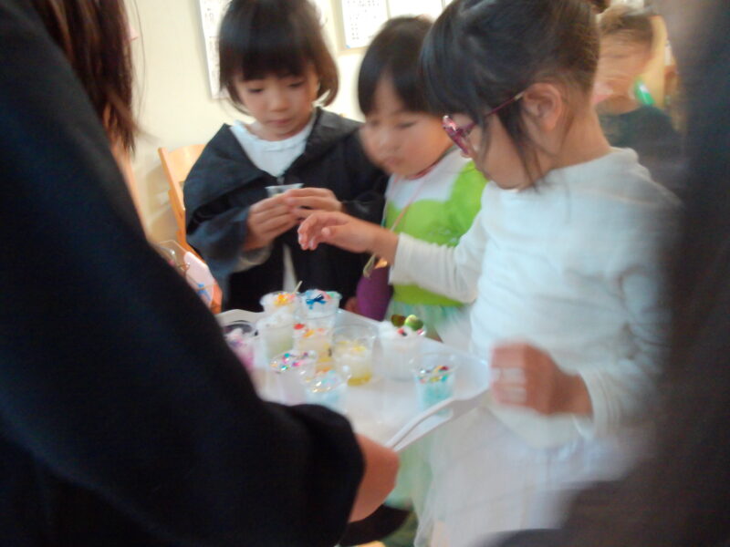 10月31日は、ハロウィンの日で、キッズさんと一緒におやつを食べました。(アイキャッチの写真です!)