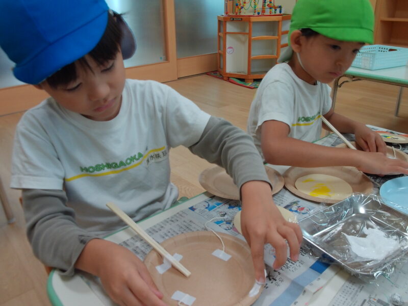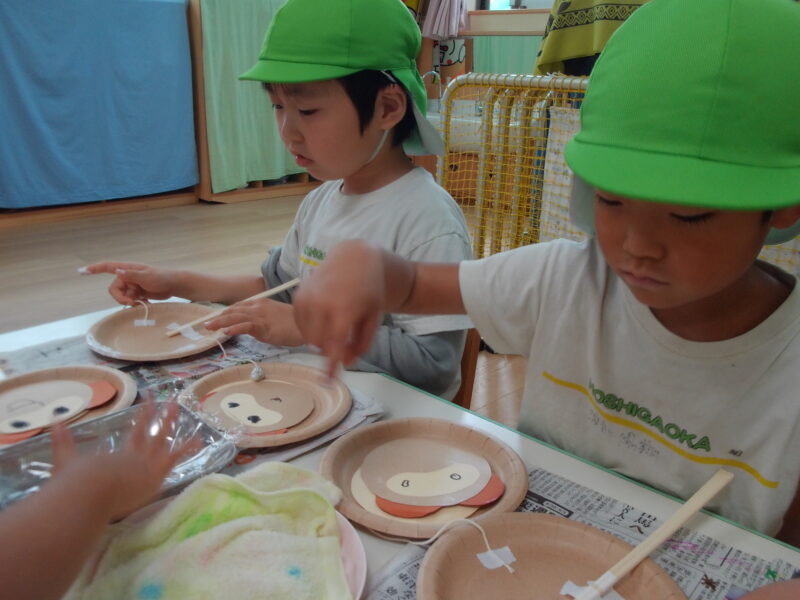 月曜日に、11月の星イベントで使う『でんでん太鼓(たぬき)』を作りました(*^_^*)