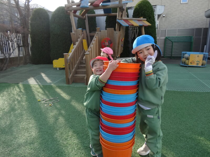 「バケツをいっぱい重ねられたよ~!」