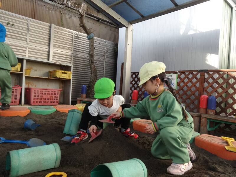 お砂場では、トンネルやヘラの様な物を使ってお山作り!