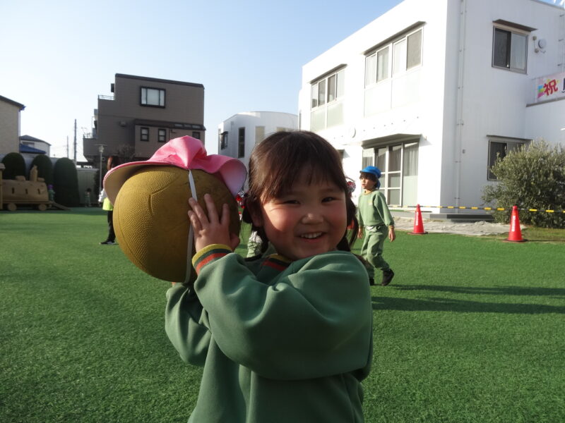ボールに自分の組帽子を被せているおともだちを発見👀