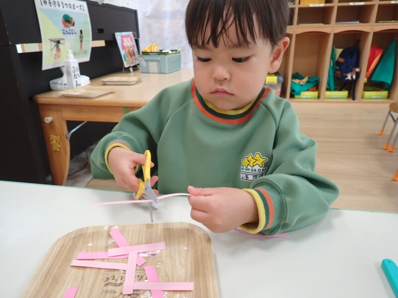 ↓ 火曜日、鋏を使ってコスモスの花びらをチョキチョキ✂