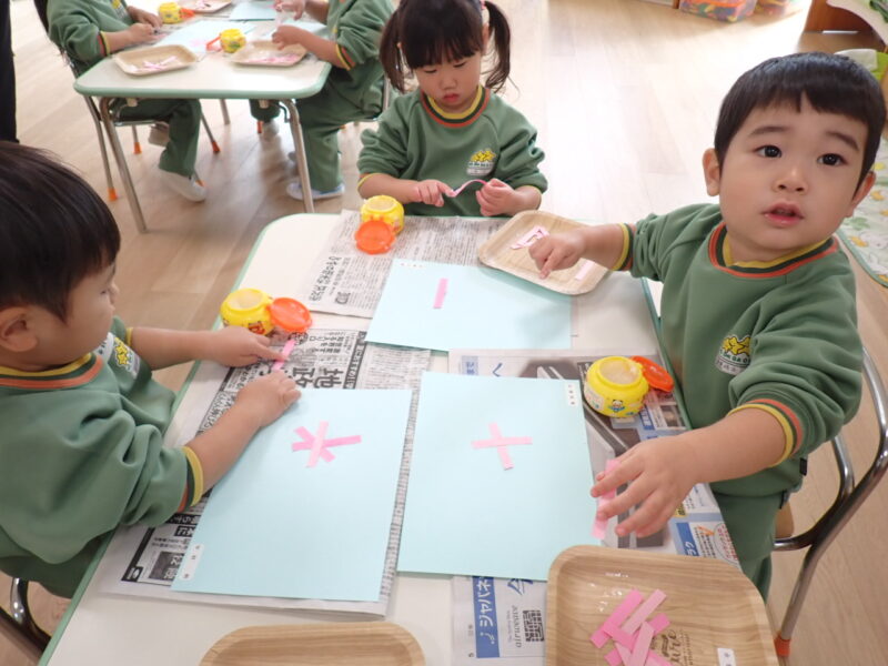 本日、「未就園児教室」「満3歳児入園」のご案内、チラシをお持たせしました。お知り合い等にあご案内頂けるとうれしいです(^^♪