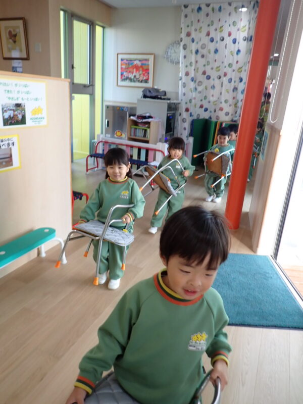 ↓ 自分の椅子は、自分で教室に運びます。力持ち~💪
